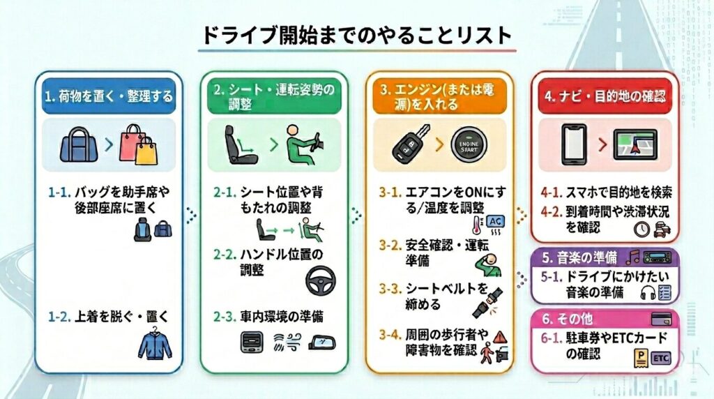 クルマに乗り込んだ後の行動をふりかえると、やることが多くておどろきますよね。